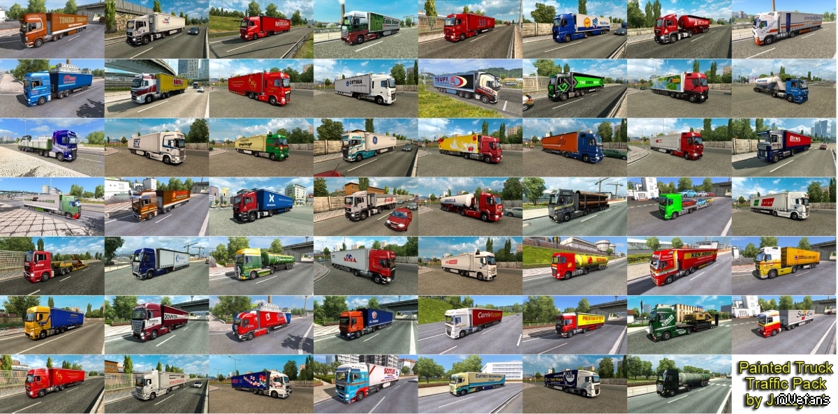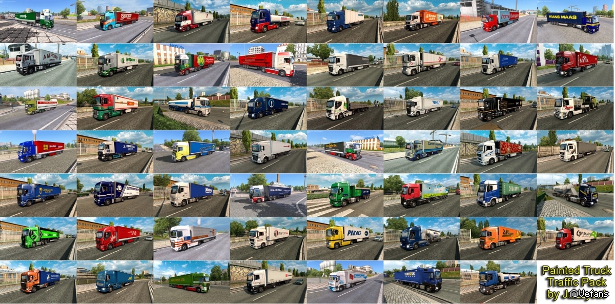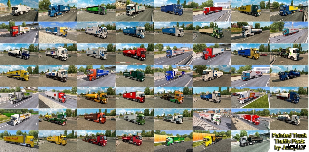 Pack adds in traffic truck+trailer combo with skins of 455 real companies.