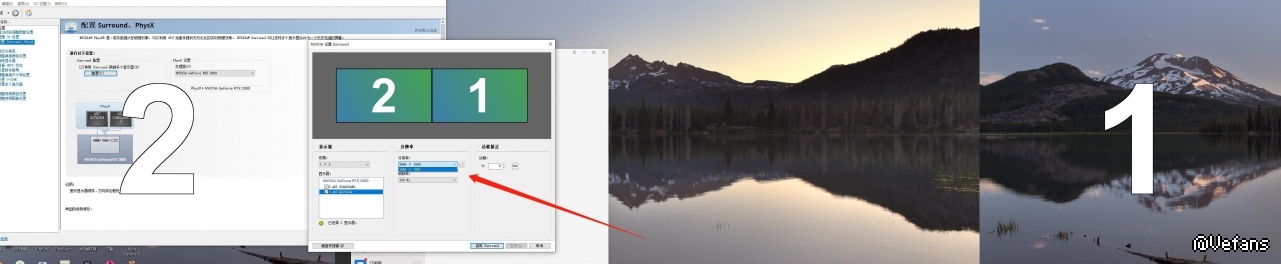 我的顯卡是2060,然後接了標準HDMI和miniHDMI兩個接口。現在懷疑是不是要一樣的顯示器才可以拼一起