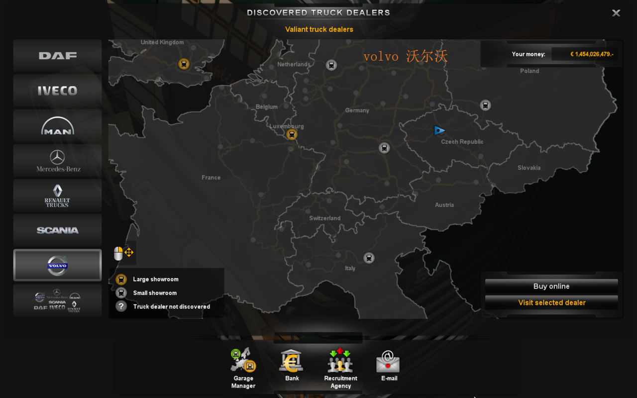 » 欧洲卡车模拟2经销商详细地图————新手专用