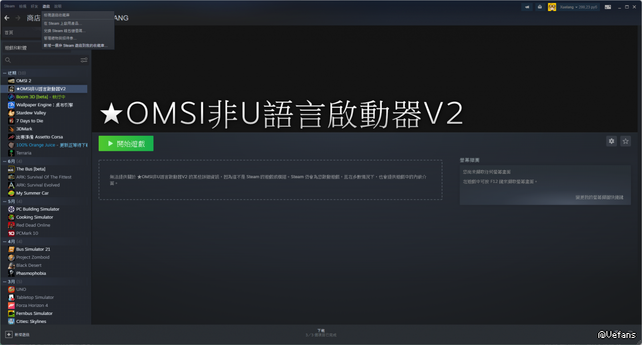 4.然後再steam收藏庫就會出現一個★OMSI非U語言啟動器V2遊戲