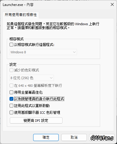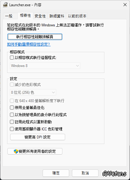 Launcher.exe"檔案點右鍵內容