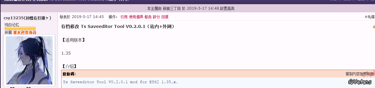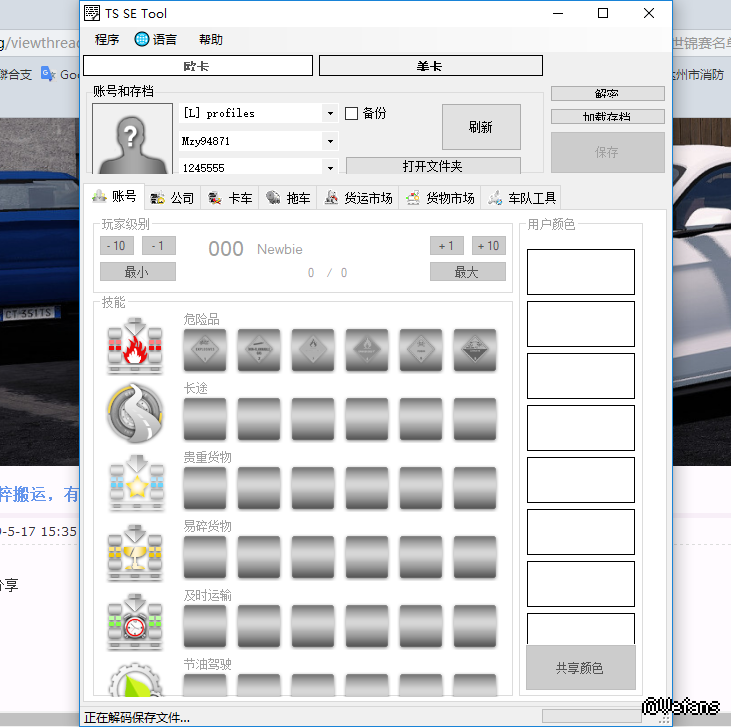 TS SE Tool加载出来了存档不能修改,刚刚在欧卡2mod区下载的,但是加载出存档没办法修改,一直是灰色。