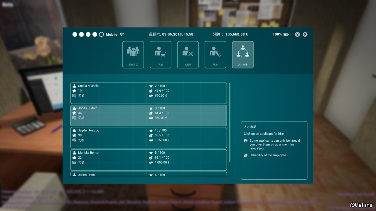 你可以为公司招募司机为你驾驶巴士,招募导游为游客提供观光旅游服务,招募技工以使维修库正常运作。和很多游戏的经营玩法不一样,在招募员工后,你还需要为员工安排住宿,购买保险,定期改善其待遇以将员工留在这座小岛上。长期不改善员工待遇可能使其满意度下降,合同到期后该员工将不会续约,自动辞职。