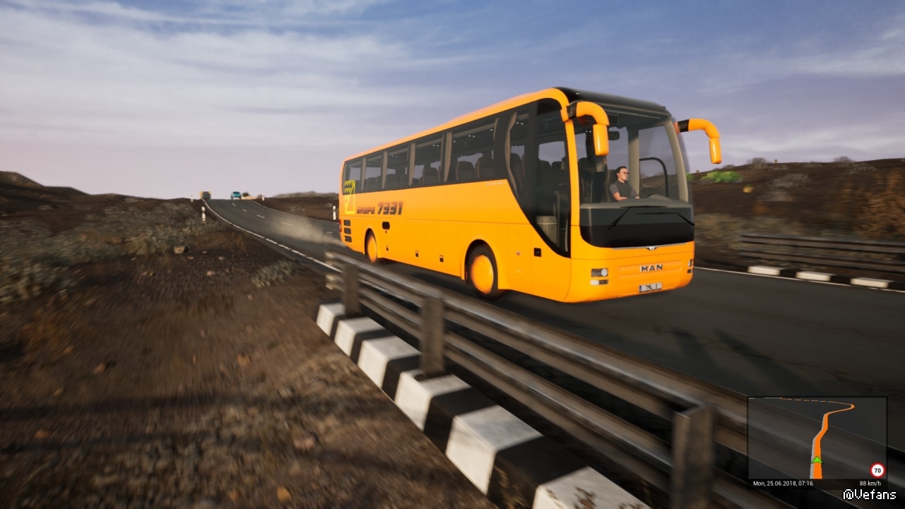 旅游巴士模拟场景取材于西班牙属那迦利群岛的富埃特文图拉岛,将之以1:5的比例缩小,深度还原富埃特文图拉岛的地形与植被特征。