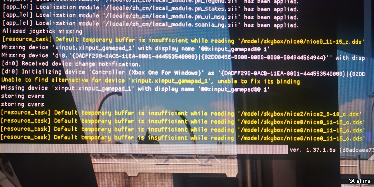 不定时的爆卡 车辆阴影闪烁 看控制台很多黄字的错误 原因都是一样的 [resource_task] Default temporary buffer is insufficient while reading '/model/skybox/nice0/nice0_11-15_c.dds' with size 33554560 翻译看了下是什么缓存不足 不太懂 求助大佬们!谢谢了!