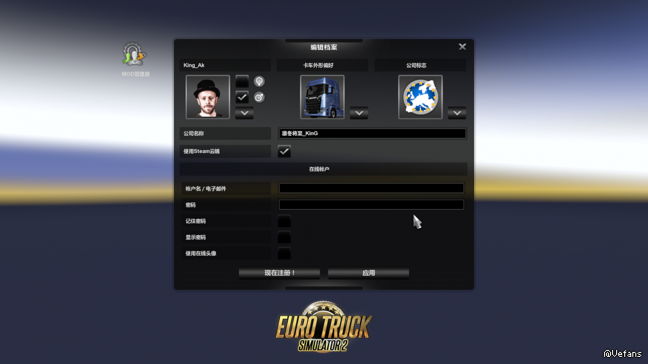 这个是让你输入World Of Trucks的账号,创完可以拉特殊货物例如前段时间可以拉礼物