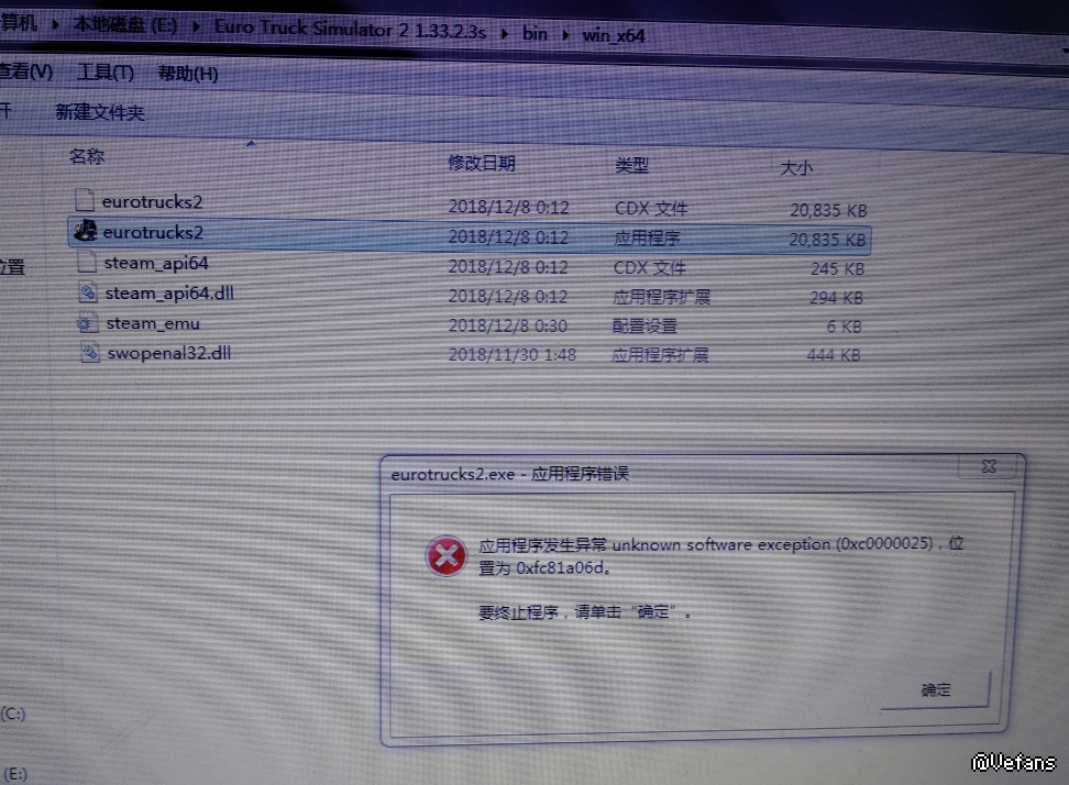 将1.32**版本里bin\win_x64文件夹中的文件(eurotrucks2.cdx和eurotrucks2.exe除外)复制到1.33**版本里bin\win_x64文件夹中即可运行