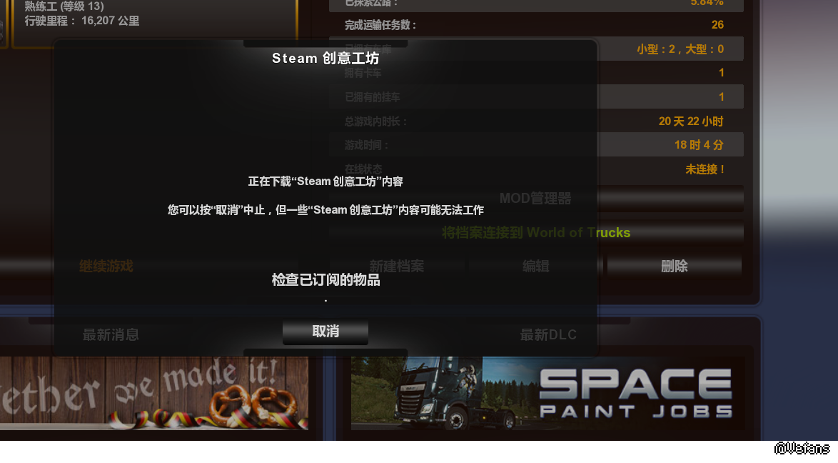 你创意工坊里以前有订阅MOD呀等他下完