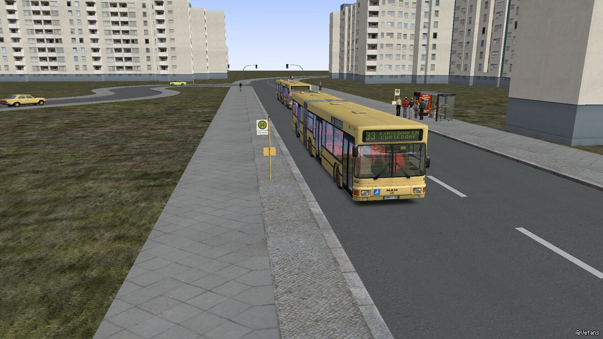 Grundorf是冷战时期的另一个柏林,东德政府对Grundorf的处理如同柏林一样,在东西边境兴建可怕的围墙,包围着西Grundorf。随着东德方于Grundorf兴建机场,东西再个政府达成协议,开办由西Grundorf开出的机场巴士往东Grundorf的机场,随后由于政策逐步改变,「跨境巴士」服务不再局限于机场,东德政府更授权BVG营办东Grundorf的巴士服务。