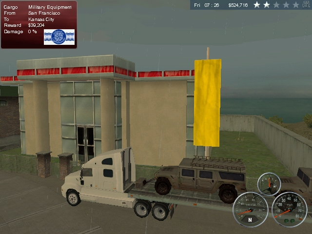 3 主要拉路途较近的,如果有像上边提到的那种就更好了,如果你恰好遇到特殊货就最好不过了。其实最终主要是提高自己的声誉星级,因为雇用司机只能雇用声誉星级比你低的。要尽量走洲际路,因为洲际路好像遇到司机的几率较大(也别说,我有一次从进入Los angele开始,卸货再接一趟到San Francisco的货,顺着小道北上到San Francisco,再交货,又接了一趟到Denver的货,过了金门大桥,再穿过隧道,整个过程没把我忙死,几乎是不停的与司机对话,我大致数了一下,前前后后大约和10来多个司机对过话,在San Francisco接货准备出货场还差一点撞上一辆正进货场的卡车!)当你开车时遇到“Freelance Trucker”与你对话时,一定要回复他,你回复一个,就联系到一个,如果此时你已联系到有“Pacific 531”的卡车店,并且你已经至少完成一趟货,就可以尝试买车了