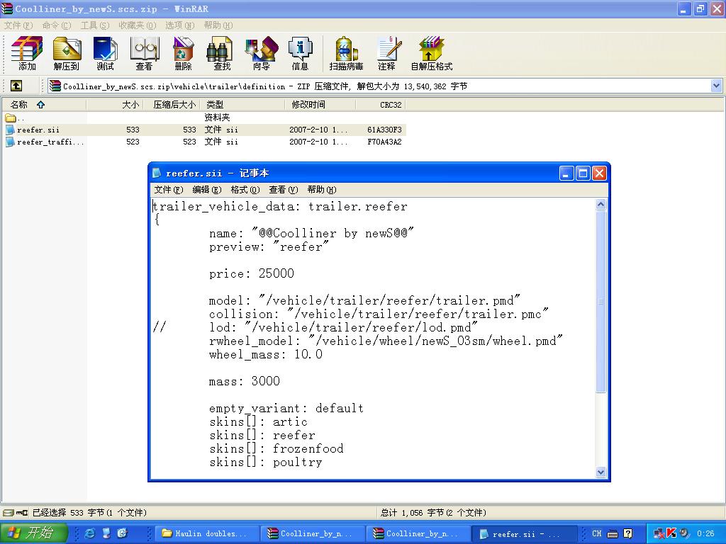 打开单双节货柜配置文件,修改一下轮胎路径就行了.