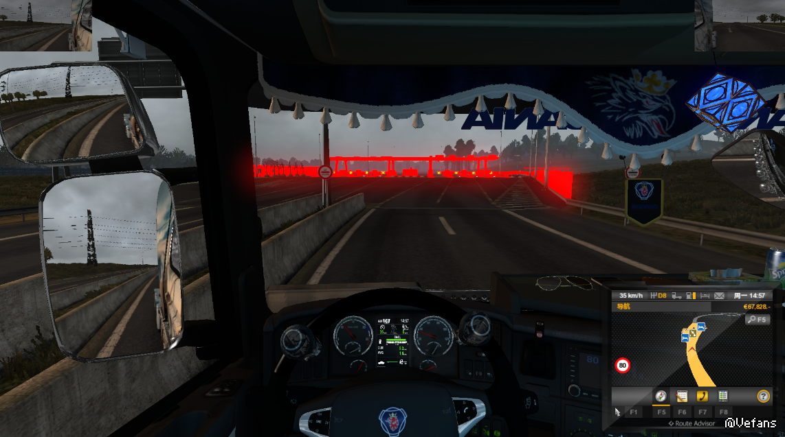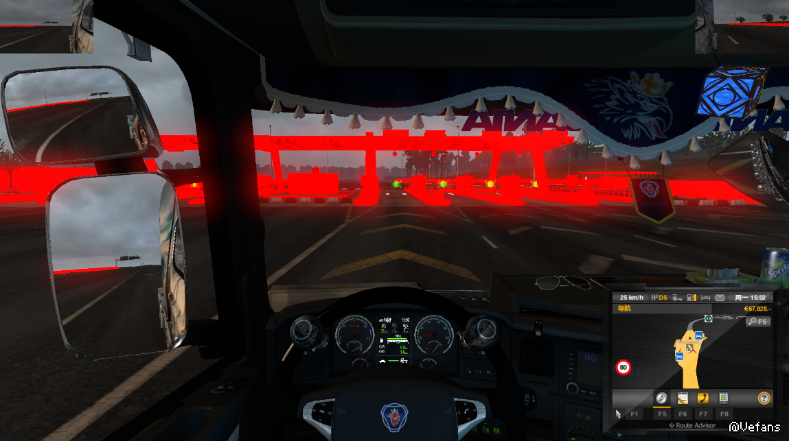 游戏版本1.25.2.6s,今天安装的promods-v2.11地图MOD,发现游戏里所有的高速收费站都变成红色的了,这是什么问题啊??