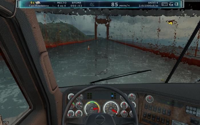 游戏任务类型包括:货场间的拉货(这种是唯一一种可以在拉货的同时有竞争对手,第一个到达目的地的有额外奖励,而且还挺丰厚);与其他卡车进行纯竞赛任务,这类任务大多能在货场找到;路边突发的走私货柜;接受电话拉货任务;酒吧接受他人委托任务;酒吧看报纸任务;拉顺风车的旅人….等等。竞赛类的任务(包括货场间拉货任务)都可以用车撞击对手,为自己争取有利位置,但首先你的车要够牢固,而且还会惹来警察。所有任务均有时间限制,超过时间到达,任务会自动取消,而且大部分任务是会扣罚玩家的金钱。有的时间很充足,有的是紧急任务,时间紧迫,通常时间越紧的,收获也就比较丰厚。