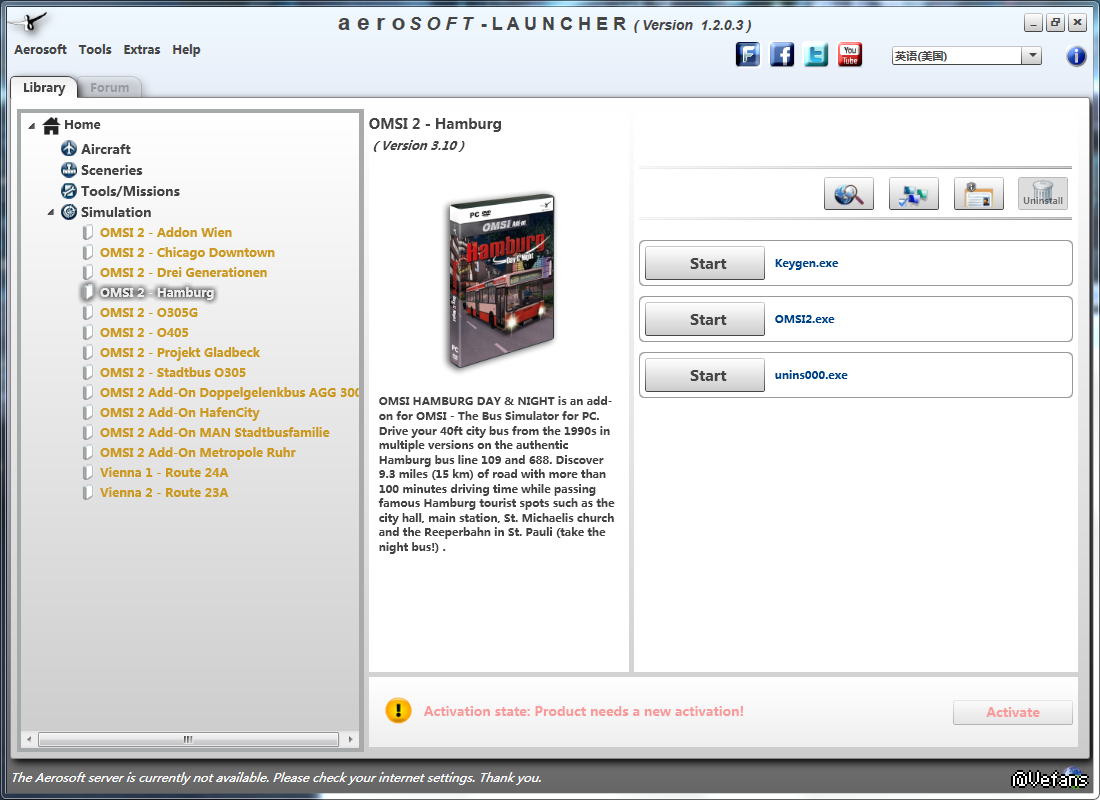我安装了Wuppertal到游戏目录,但是打开激活软件没有找到逐个的