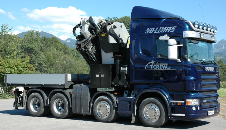 An 10x4 tractor with a Palfinger PK150002 crane