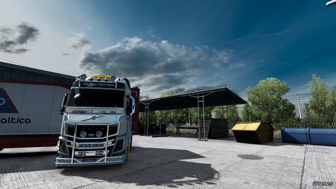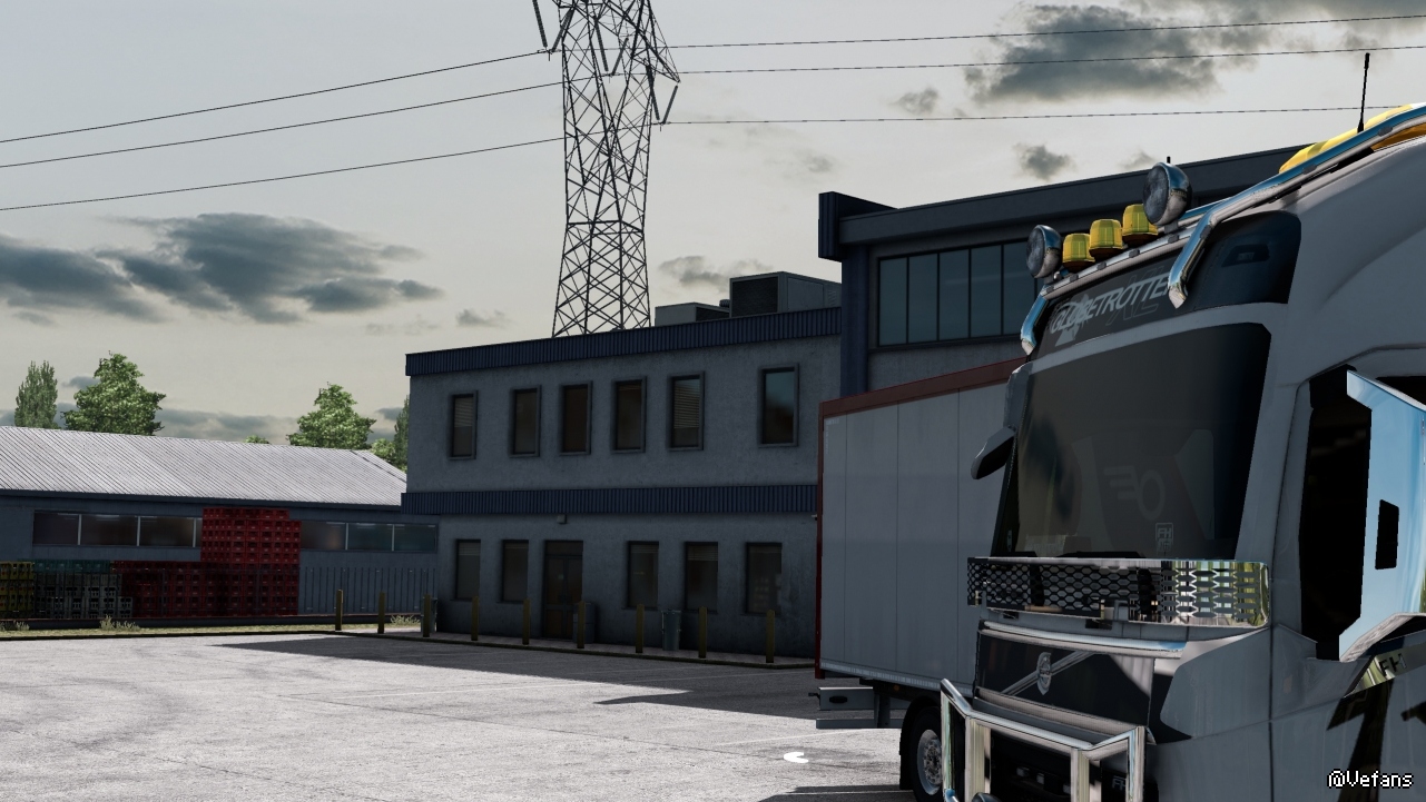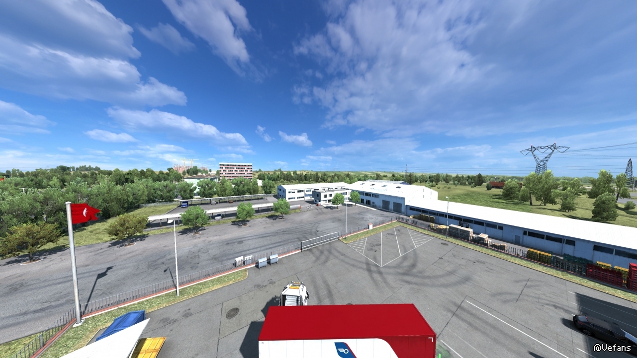 在2K下就能明显看出和JBX的区别:JBX最高高达16K的贴图分辨率展现出了优势,天空中的云是特别能看出差异。如果还加上Promods,那JBX的优势更大,因为不知什么原因,其他画质mod配Promods,云彩的边缘分辨率急剧下降,比如NL就很明显都马赛克了。