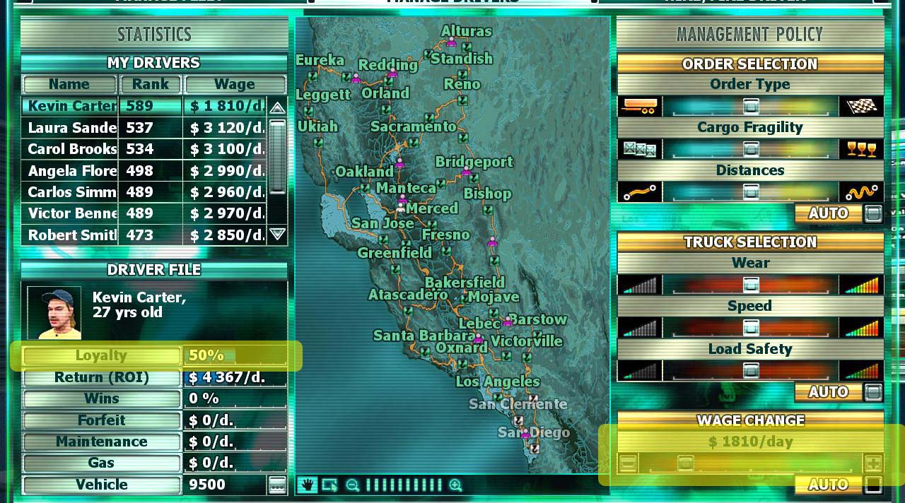原帖由 suiyuanba 於 2011-3-16 07:58 發表 昨晚狠下心,把50个司机全解雇了,再重新聘用,按照楼主的方法设置,一共聘用30个司机(设置实在麻烦,设置30个司机花了1个多小时),现在一天收入27W多吧,但工资也到了13W了,以前默认设置,50个司机一天收入也是不到30W,工资 ...