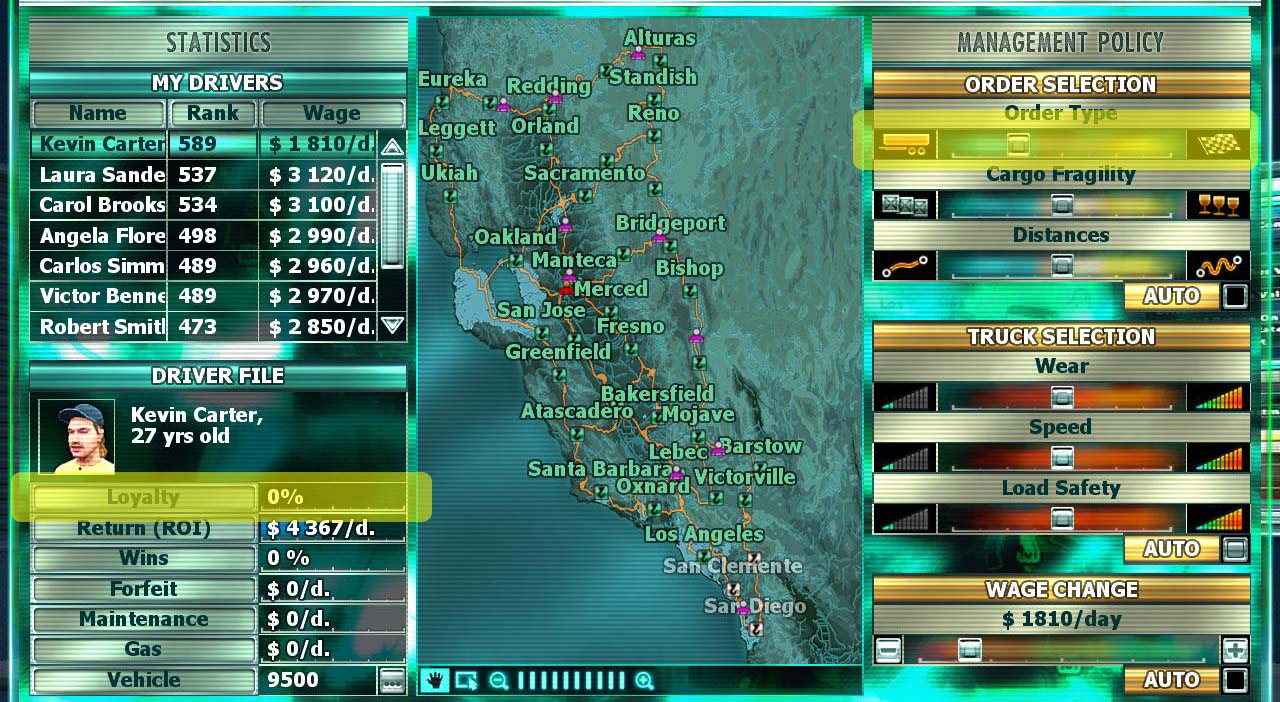 原帖由 SEALs 於 2011-3-16 21:41 發表 TRUCK SELECTION好象是调整雇佣司机在运送货物的过程中求快速高效还是稳妥行事的平衡度``` 应该也可以研究出最佳最有有效率的方案```