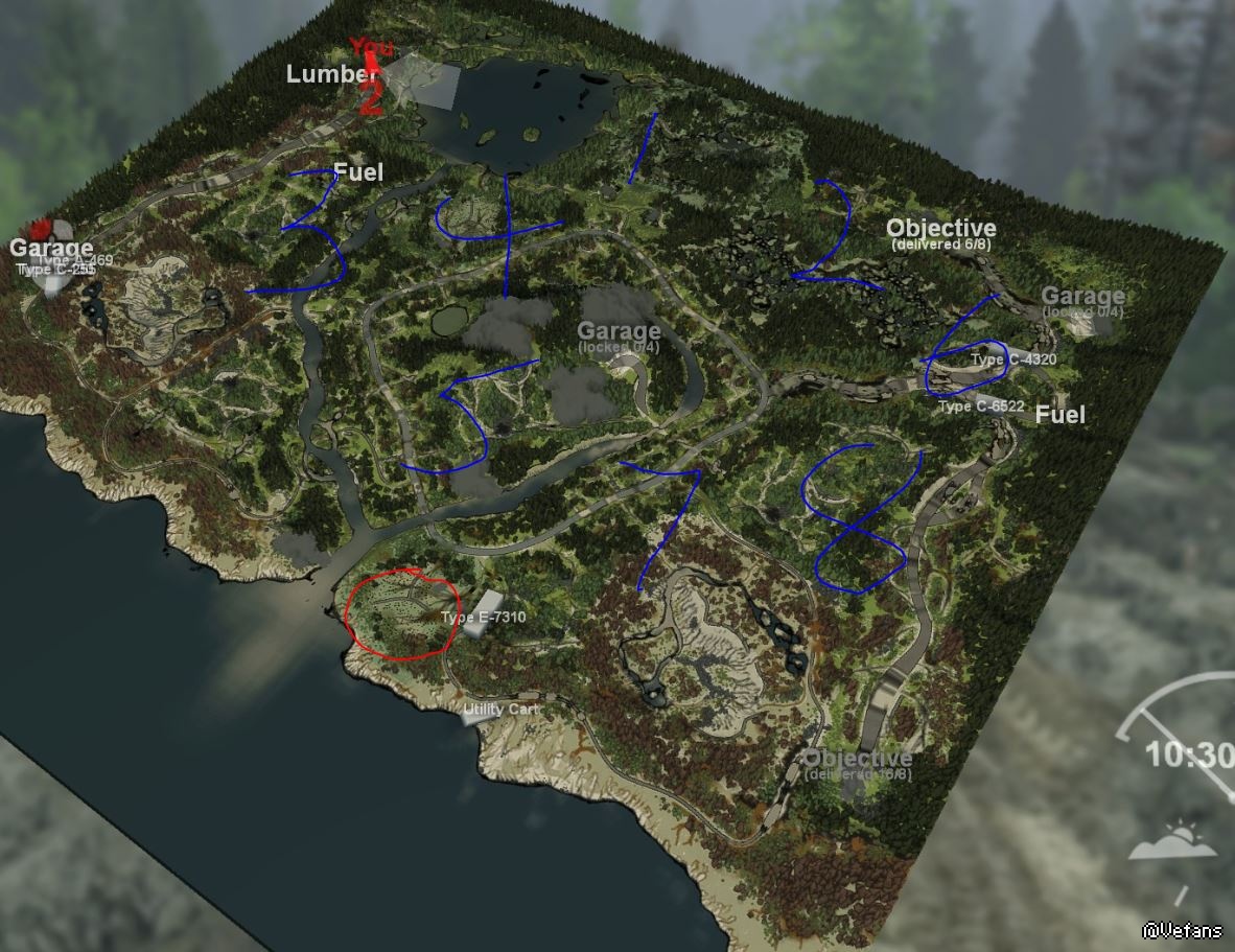 河岸地图有2个隐藏的装圆木点,是要自己装的,就喜欢自己用吊车装圆木,一个已经找到,用红笔圈出来了