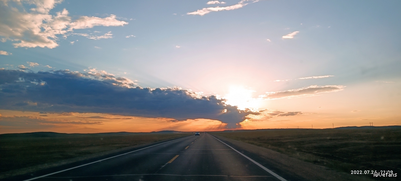 夕阳还是在大路上拍比较好,分享两张七月在新疆国道上拍的夕阳(为了省过路费没上高速)