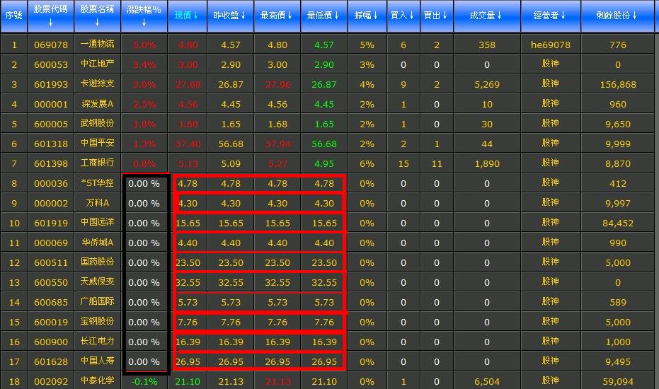 黑框那里是涨幅,股票要么是涨,要么是跌,要么就是不涨不跌,有几只股票不涨不跌有什么奇怪