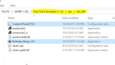 2、图中这两个文件放入游戏根目录的bin\win_x64文件夹里面(正版的根目录位于Program Files\Steam\steamapps\common\Euro Truck Simulator 2\bin\win_x64