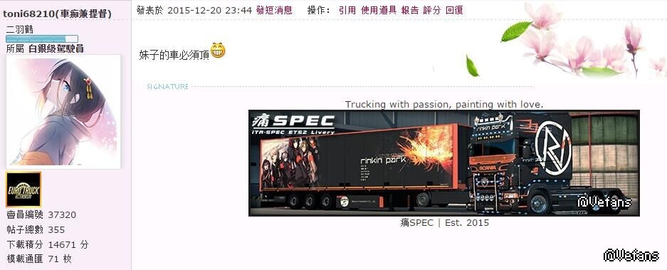 原帖由 冬天的xx 於 21-12-2015 18:45 發表 这车还卡?是你自己电脑配置原因了。我玩过的财迷最卡的车是惊破天,其次是欧曼。这车基本上不影响游戏帧数
