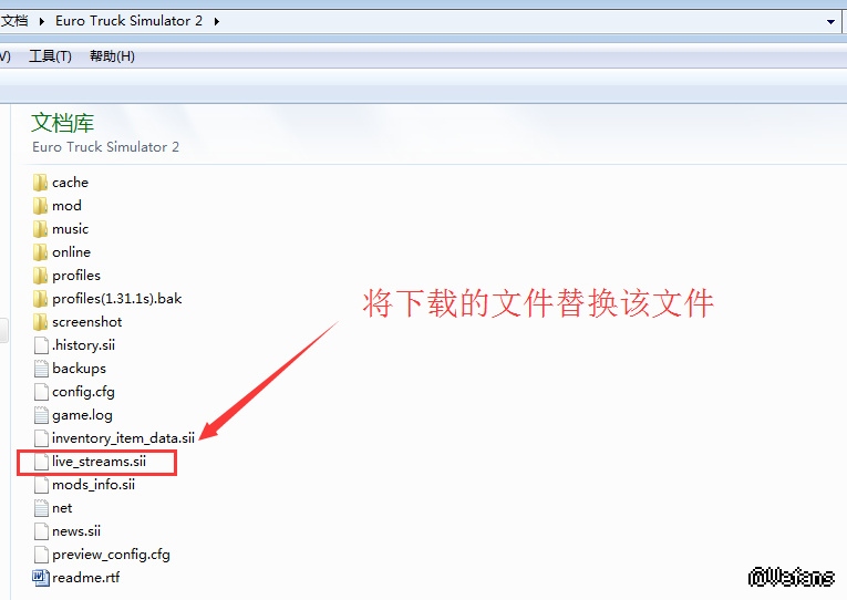 将下载得到的文件“live_streams.sii”替换