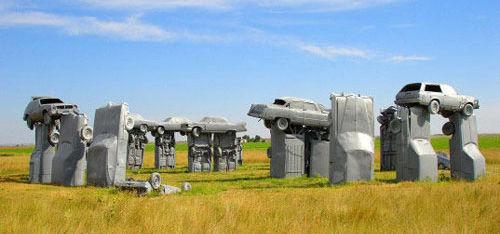 受巨石阵启发,美国雕塑家吉姆·赖因德斯1987年在阿莱恩斯附近以接近1:1的比例建造巨车阵。赖因德斯把38辆美国老轿车依照巨石阵石头排列的方式摆放,排成一个圆形,有的埋入地下,有的露出半截车身,有的直立摆放,只有9辆车“高高在上”。这些车子都被喷刷成灰色,以模仿天然石头的视觉效果。