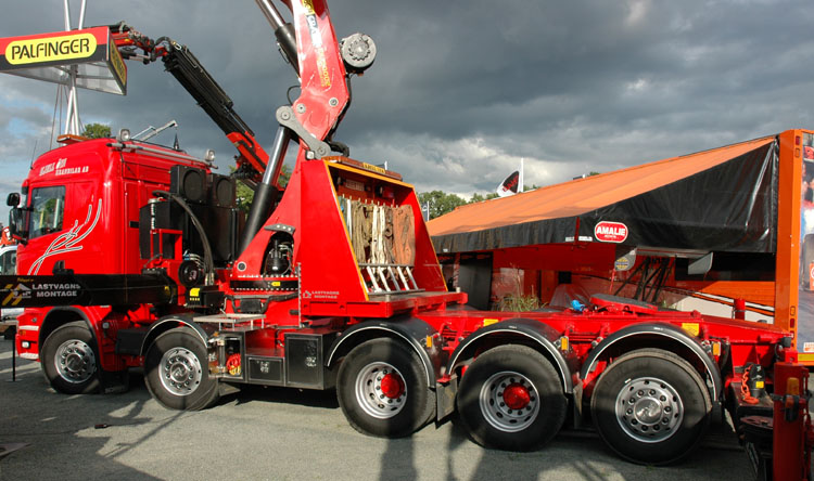 An 10x4 tractor with a Palfinger PK150002 crane