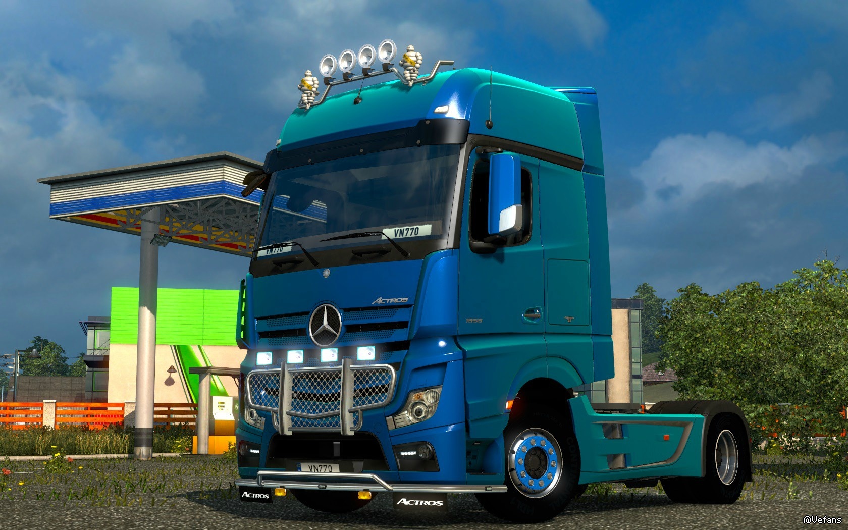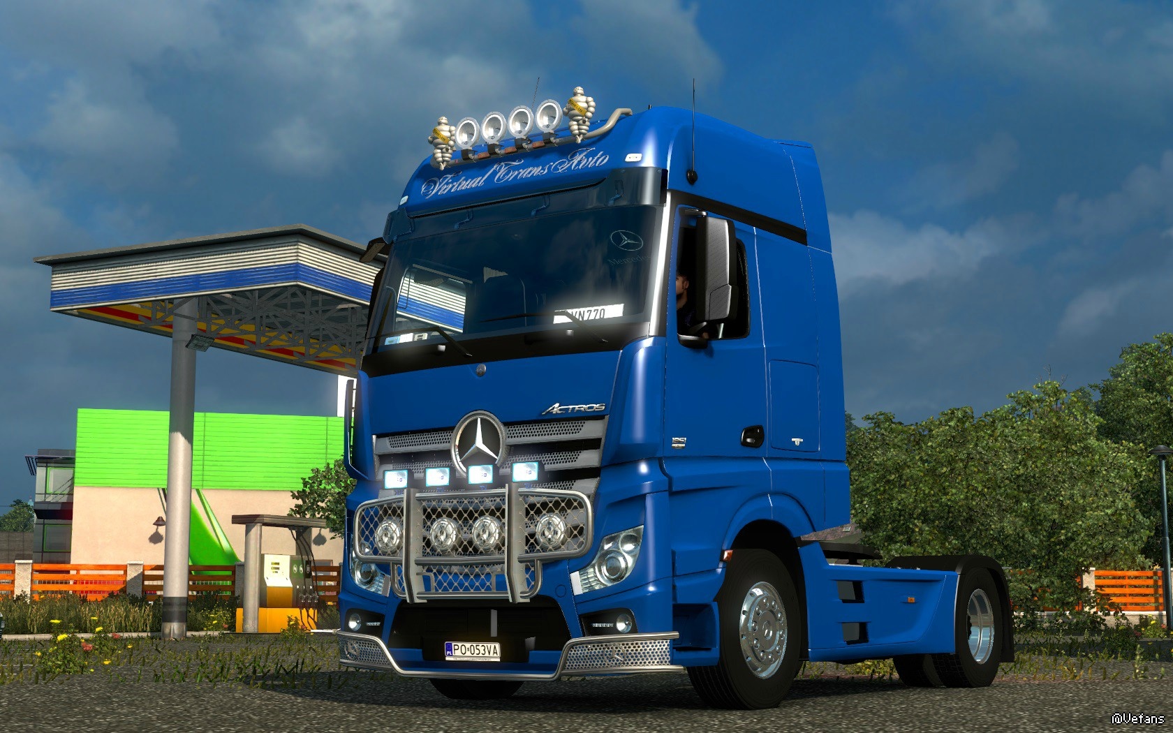 终于升级到1.18最新版~~~官方新增一台Benz Actros MP4~~~意味着SCS已经搞掂最高冷的奔驰~~~取得欧洲所有卡车品牌的授权~~~不过早在1.31(2年前)已经有MP4~~~一个官方版~~~一个民间版~~~同台对比~~~谁更漂亮???仁者见仁智者见智~~~个人认为内饰无疑是官方更胜一筹~~~但是灯具设计民间版本更漂亮~~~PS:新版本的光影个人觉得有点重口.......还有~~~官方就不能兼容以前的轮胎mod吗?!一改装车轮胎全变了!