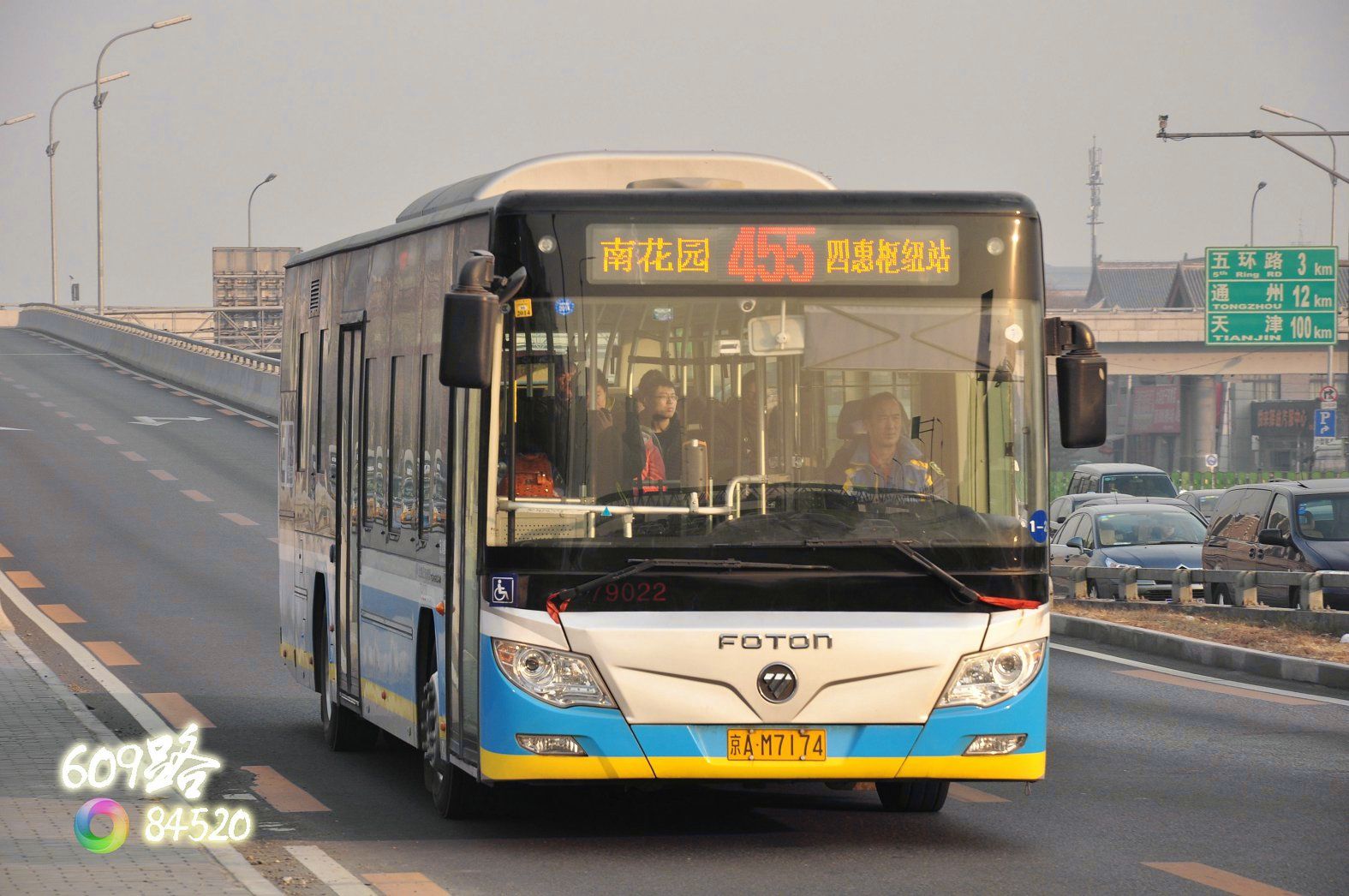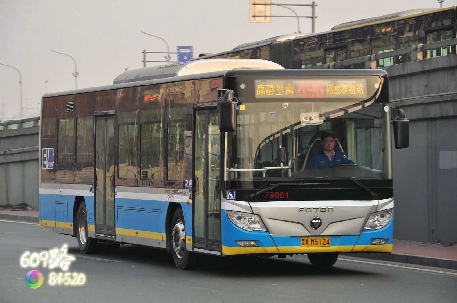 在496路、455路运营的福田鹰脸纯电动: