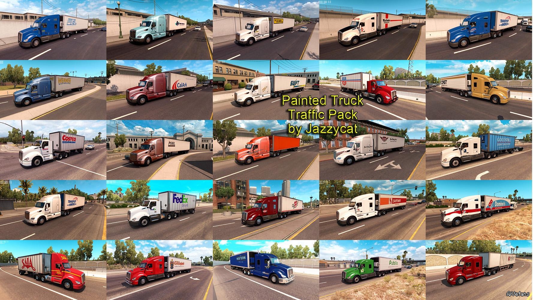 Pack adds in traffic truck+trailer combo with skins of 24 real companies.