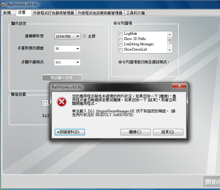 安裝完 模擬火車2:鐵路工廠 進入時出現問題..