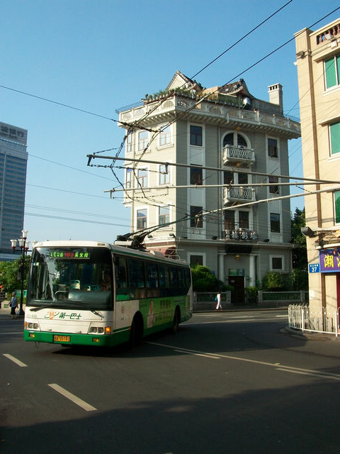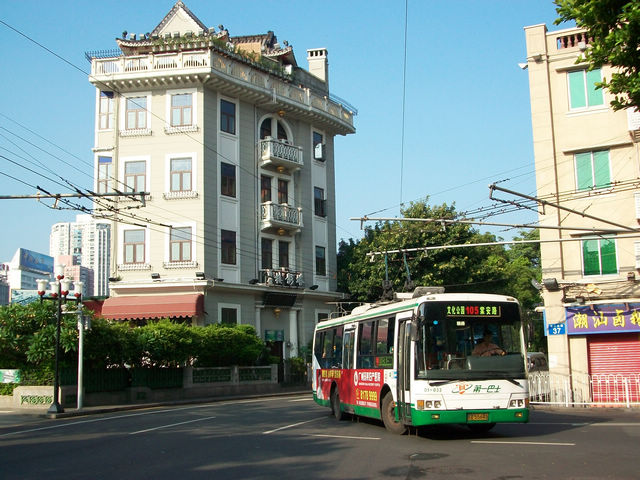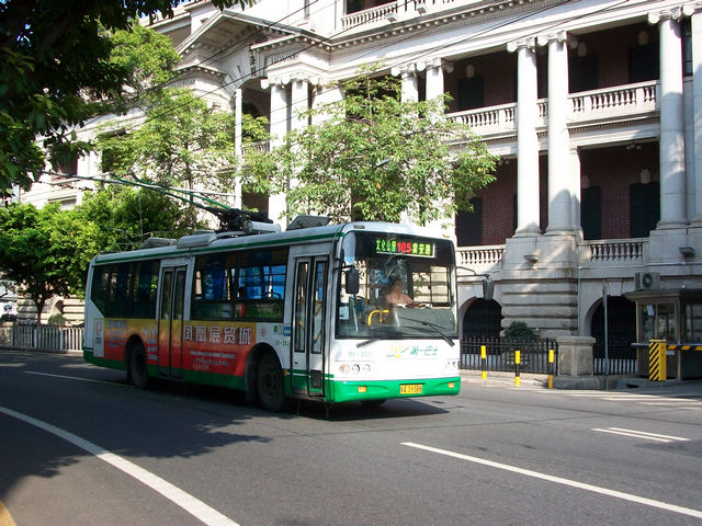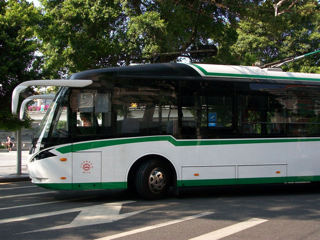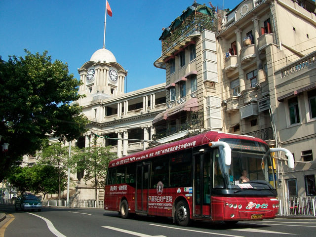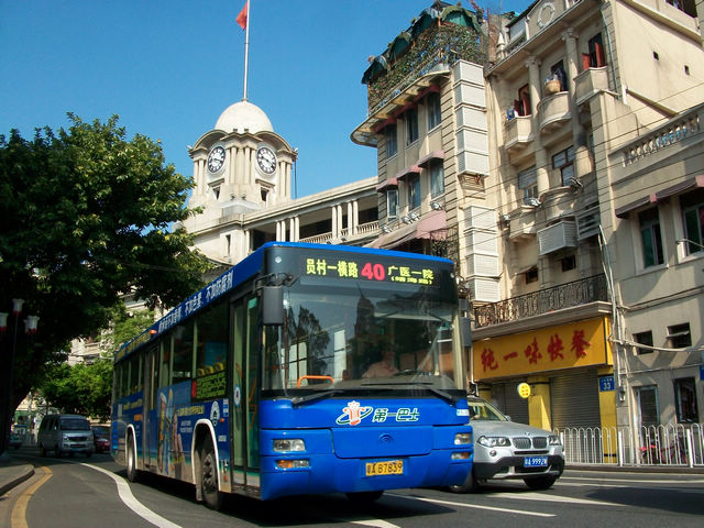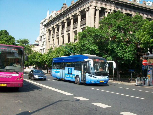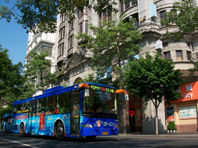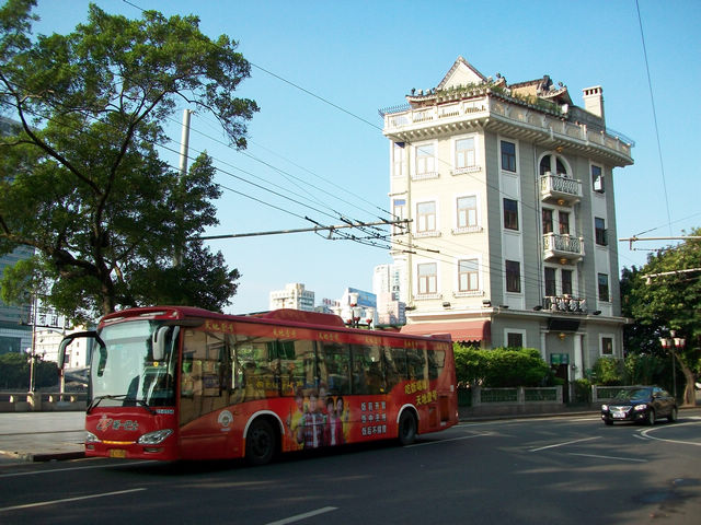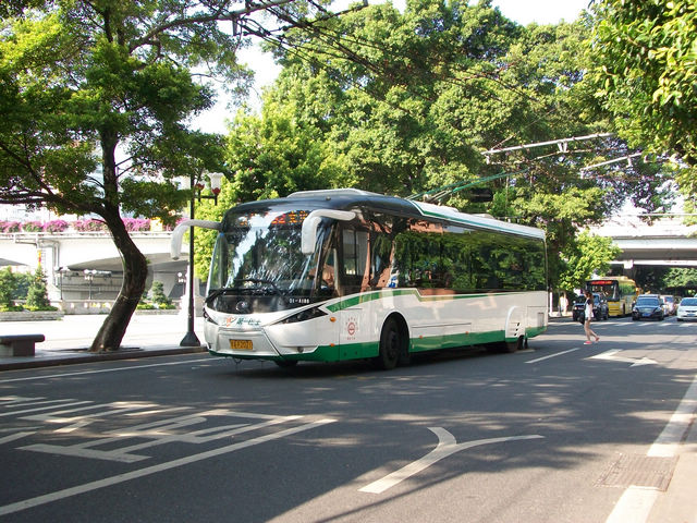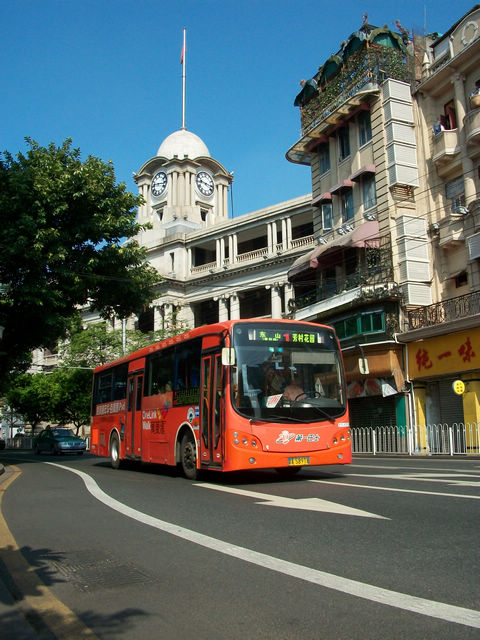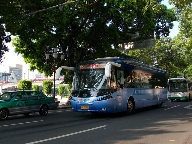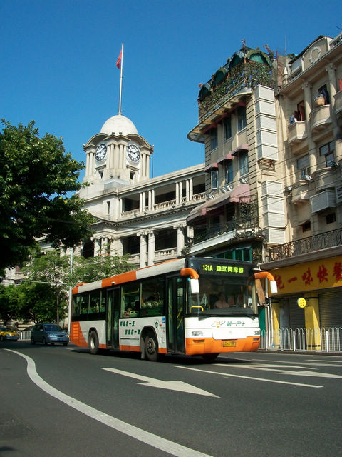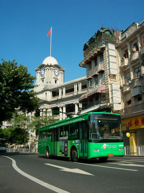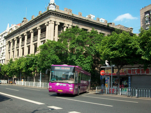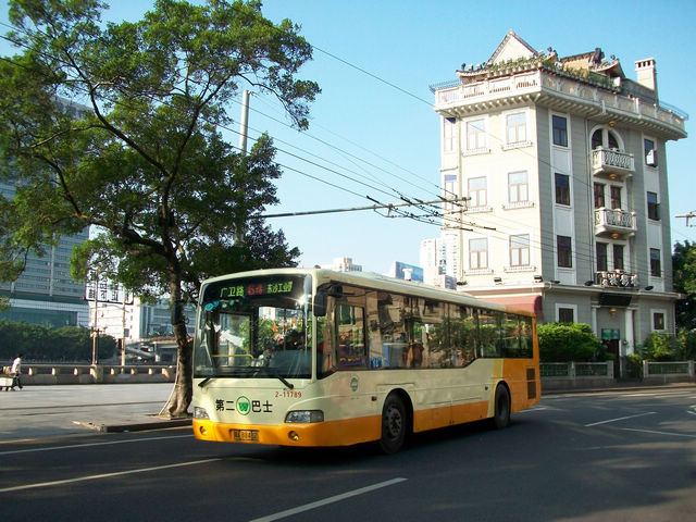 广州的沿江西路上的巴士