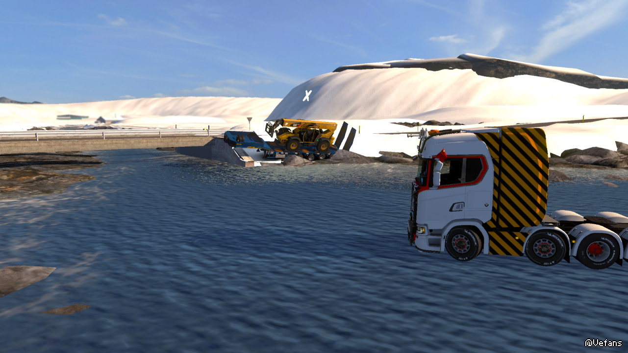 从冰岛伊萨菲尔德送货到阿克拉内斯,由于车速过快冲出道路!本想试试看车头掉到水里是什么样子,没想到啊没想到它居然平稳的落在水面上就像在冰面上一样,问题是还能开着车头在水面上到处跑