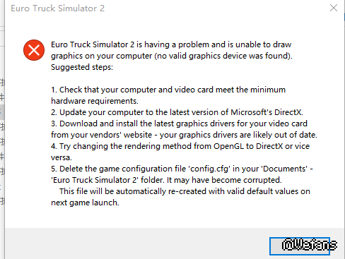 欧洲卡车模拟2出现了一个问题,在你的电脑上无法绘制图形(没有发现有效的图形设备),建议步骤:
