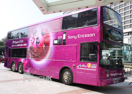 SonyEricsson 為配合 G705 的推出,更於昨日於手機發佈時同時宣佈與城巴/ 新巴合作推出全港首部 Wi-Fi 巴士 (見下圖),讓用戶可以使用 G705 手機於 Wi-Fi 巴士上免費極速上網。