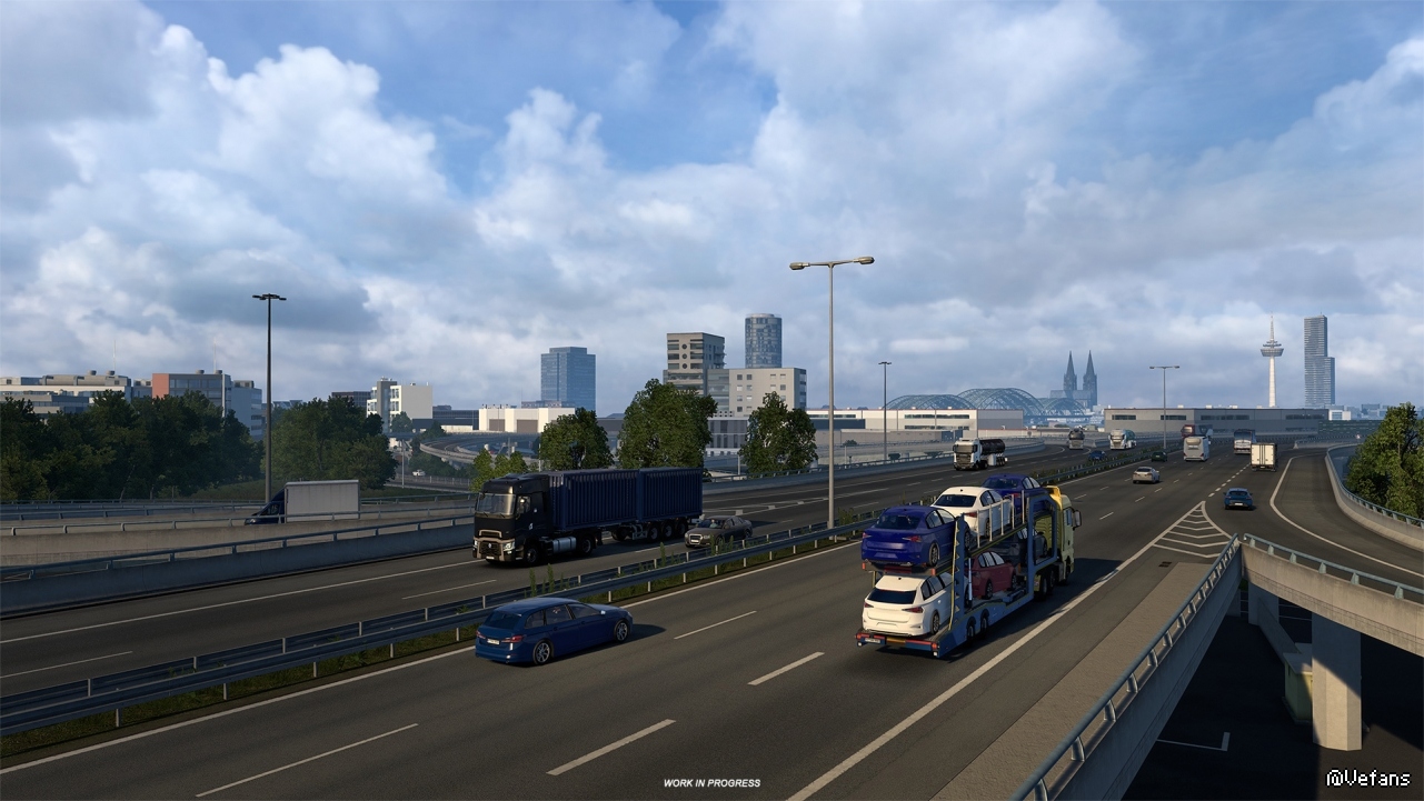 在重新设计科隆城市时,我们希望确保捕捉到莱茵河的规模,莱茵河穿过该地区的多个城市,其中最著名的是科隆。有了莱茵河的加入,现在就可以沿着河岸行驶,欣赏科隆的标志性建筑和地标。